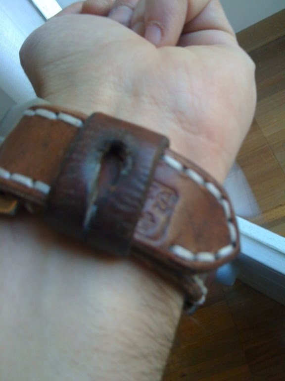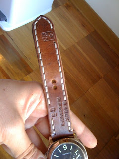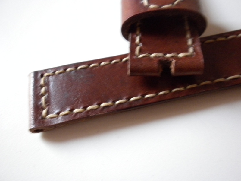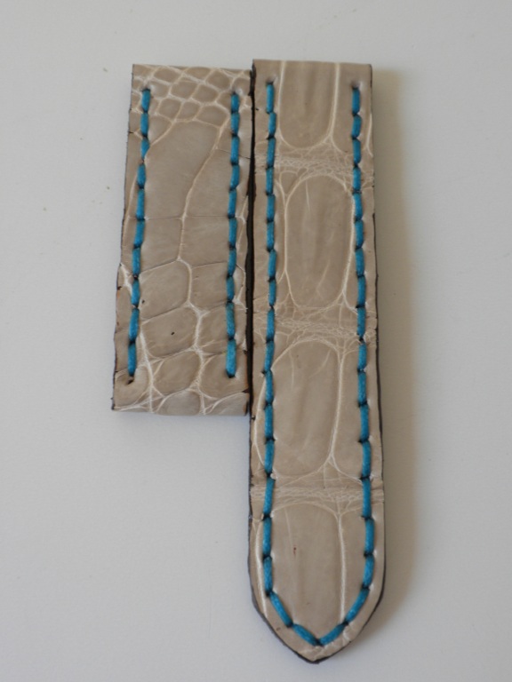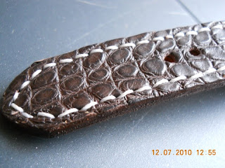 I wax the thread as in the ancient times, each hole is handcrafted in the leather I have cut on personal size and length. I use very simple instruments but they are very difficult to find out because nowadays are quite completely disappeared. For this reason every single strap I manufacture is different from the other one and can be customized following the wishes of the client: he can choose exactly the kind of leather, the thickness and the colour of the thread and the distance between each hole and the other in the leather seam.